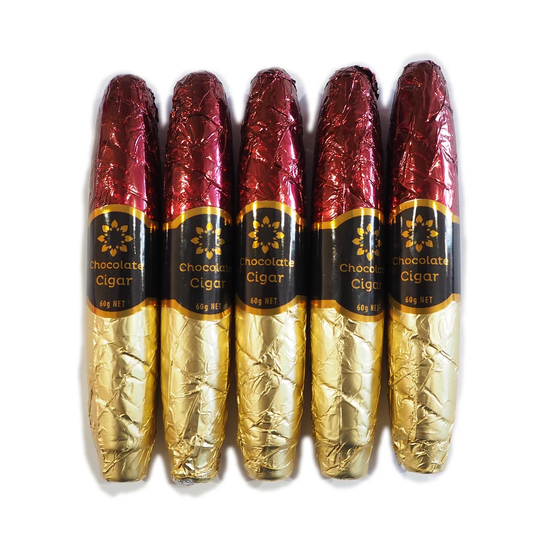Chocolate Cigars are a unique, foil-wrapped,hand made, high-quality chocolate. These make for a great novelty gift, game night prop, corporate gift etc.