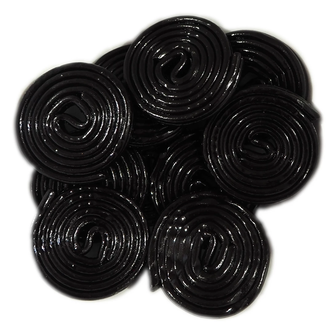 These are like licorice laces stuck and wound up into a spiral wheel.